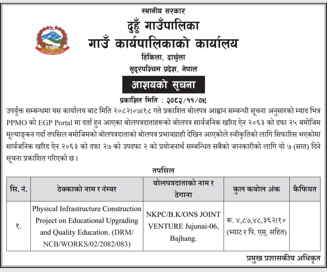 आशयको सूचना ।