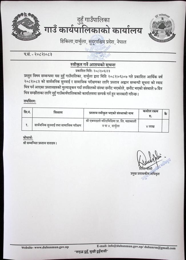 इमेल ठेगानाः cao@duhunmun.gov.np
