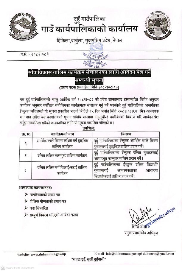 सीप विकास तालिम सम्बन्धि सूचना ।