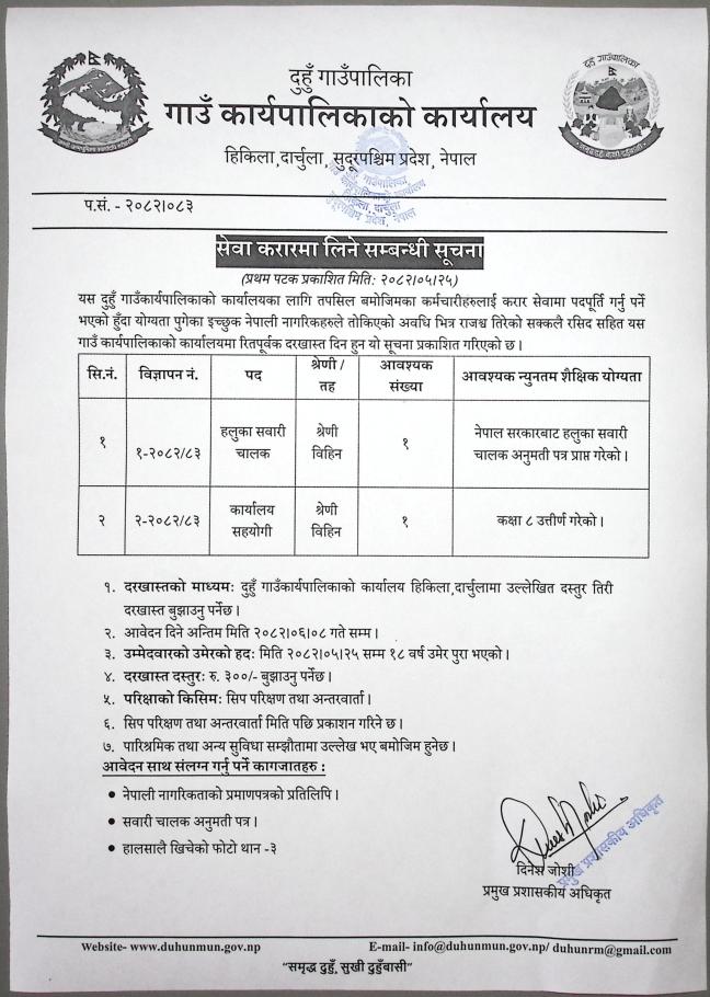 सेवा करारमा लिने सम्बन्धी सूचना ।